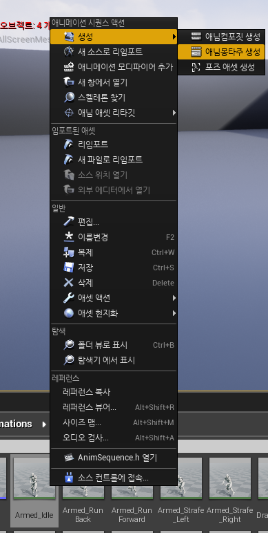 아래와 같이 애니메이션의 몽타주를 직접 생성 할 수도 있고