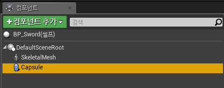 1. 충돌을 하고자하는 검에 Capsule Collision을 추가하고 검 부분에 충돌체를 맞춰준다.