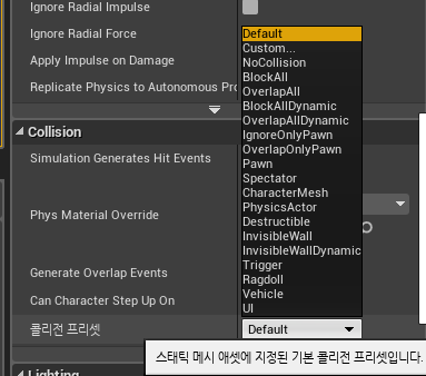 콜리전 프리셋 설정또한 해주어야 하는데 이름에 붙는 접두어, 접미어로 설정을 유추해볼 수 있다.
