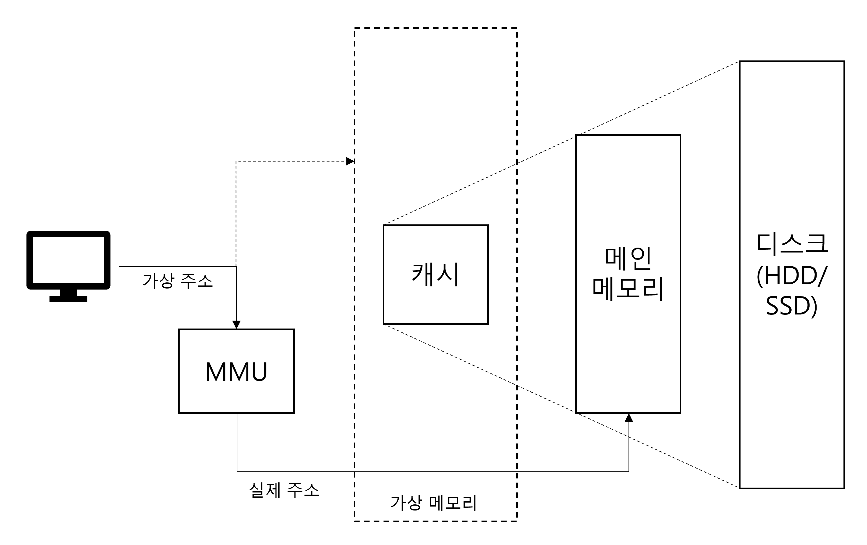 할 수 있게 하며 컴퓨터가 보조 메모리를 주 메모리인 것처럼 처리할 수도 있습니다.