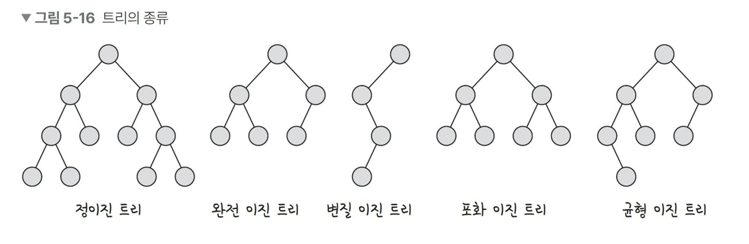 - 정이진 트리(full binary tree) : 자식 노드가 두 개인 이진트리를 의미