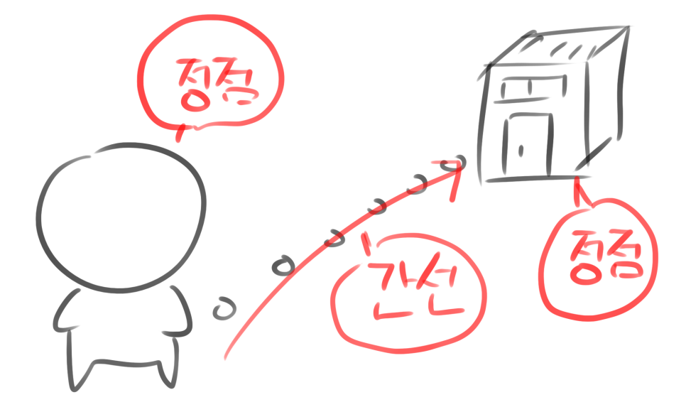 필자가 위 그림처럼 어떤 아파트로 간다고 해봅시다. 저와 아파트는 하나의 정점이고 거기로 가는 길은 간선이 됩니다.