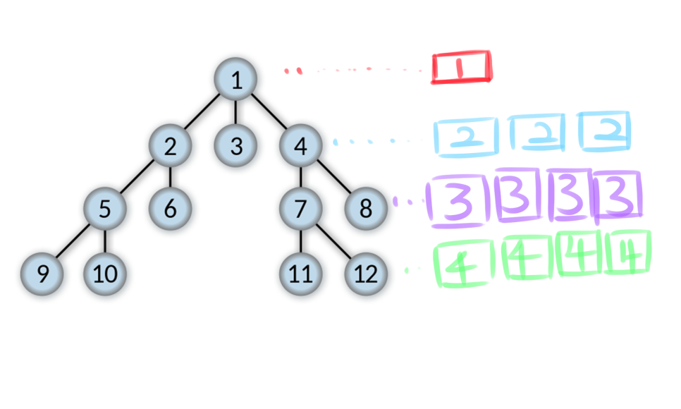 - 레벨: 트리의 레벨은 주어지는 문제마다 조금씩 다르지만 보통 깊이와 같은 의미를 지닙니다. 1번 노드를 0레벨이라고 하고 2번 노드, 3번 노드까지의 레벨을 1레벨이라고 할 수도 있고, 1번 노드를 1레벨이라고도 할 수 있습니다. 예를 들어 1번 노드를 1레벨이라고 한다면 2번 노드와 3번 노드는 2레벨이 됩니다.