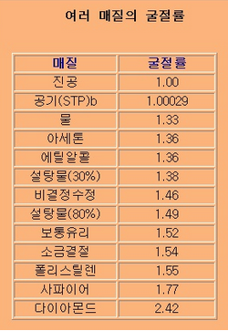 굴절은 구글에 매질에 따른 굴절률이라 치면 나온다.(1.52는 보통유리, 그림 7-1참고)